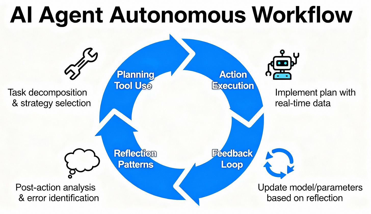 AI agent cũng vậy. Nó có khả năng lên kế hoạch, truy cập công cụ, sửa sai, rút kinh nghiệm và đôi khi còn biết tự kiểm tra lại trước khi gửi kết quả cuối cùng.