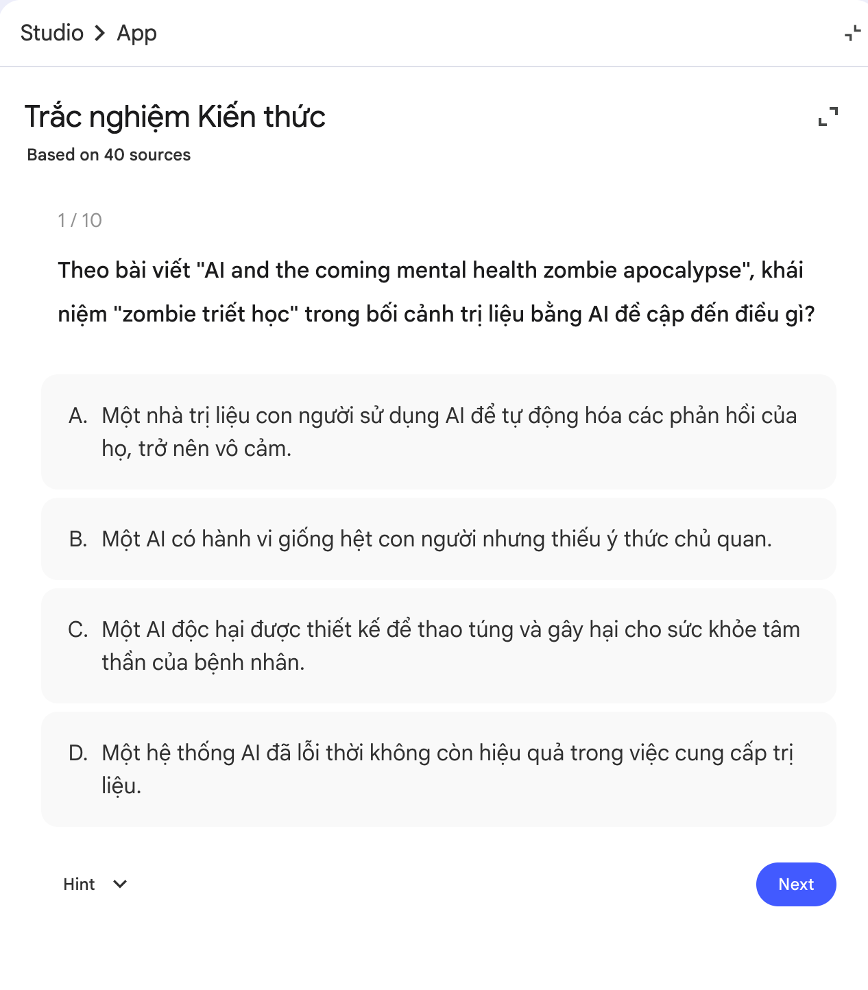 → Ứng dụng: Nghe để nắm overview nhanh hoặc dùng như bản tóm tắt trước khi đọc sâu tài liệu gốc. Có thể ứng dụng để sáng tạo nhiều cách học khác nhau.