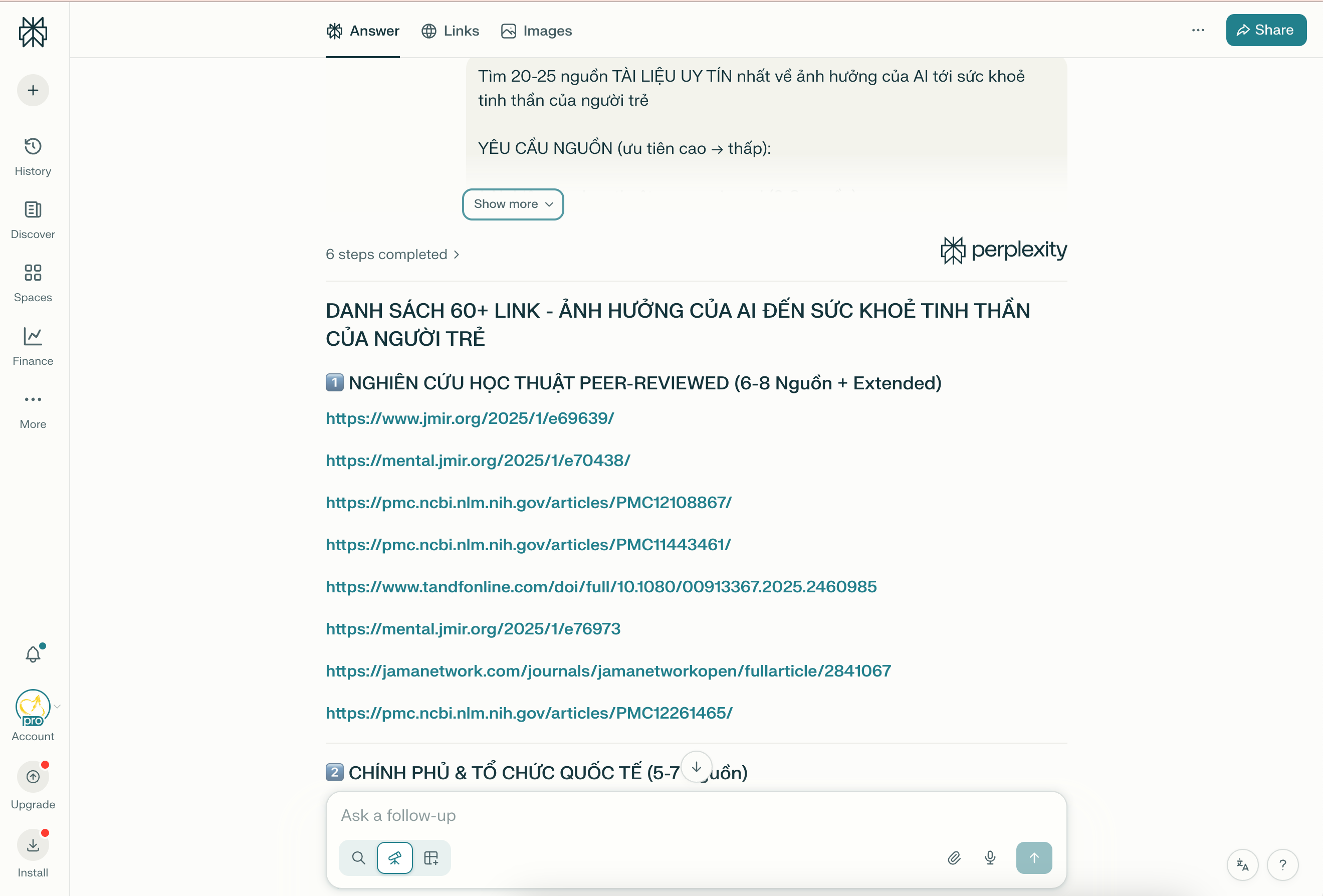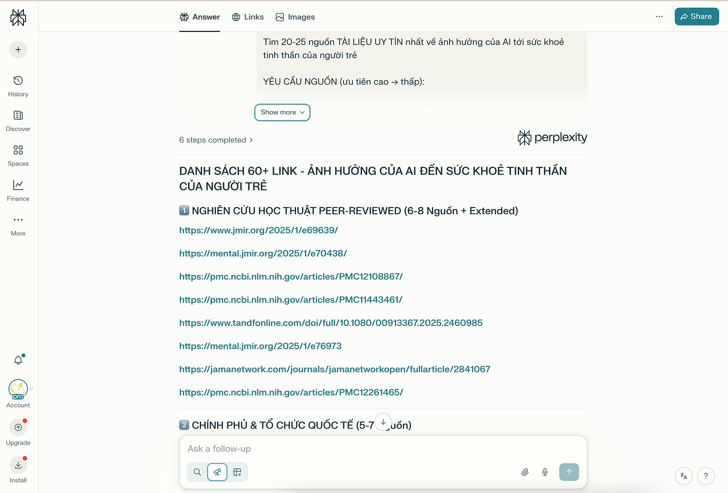Dùng Perplexity AI để tìm kiếm các nguồn tài liệu