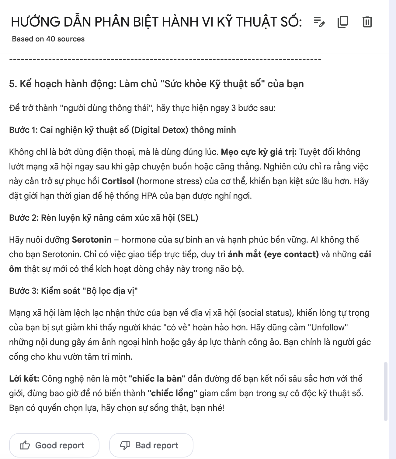 → Ứng dụng: Tạo báo cáo cuối cùng sau khi nghiên cứu, làm tài liệu nội bộ, note học tập nâng cao, hoặc tạo bài blog/bài viết dài của bạn.