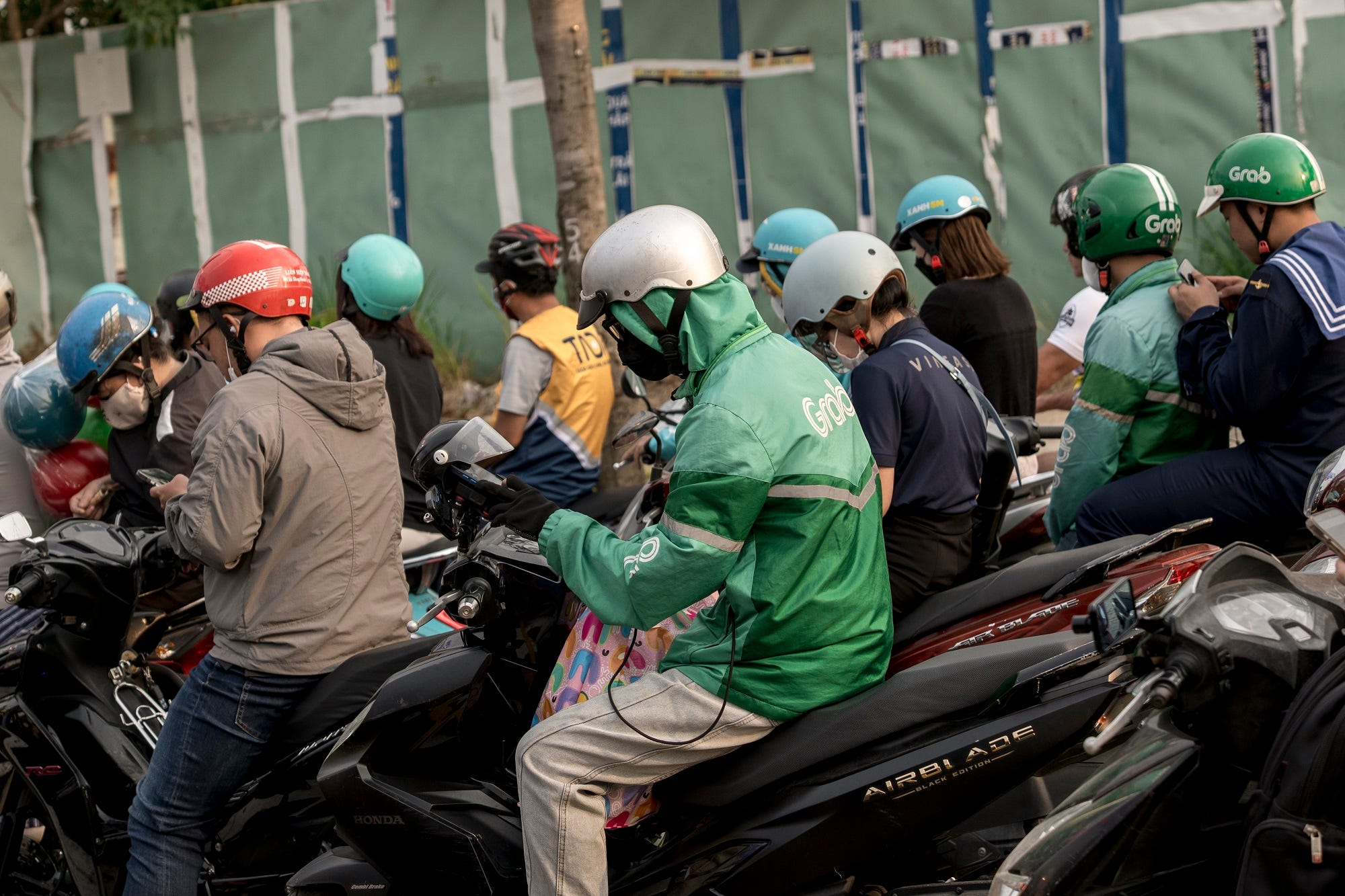 “Không giống công nhân đâu chị”, Giáp nói. “Công nhân có chế độ, còn bọn em thì không có gì cả.” Dù lực lượng xe ôm công nghệ rất đông đảo, từ manh nha vào 2015 nay tăng vọt lên bằng một nửa số công nhân ngành có lịch sử lâu đời và đang sử dụng công nhân nhiều thứ hai ở Việt Nam như da giày.