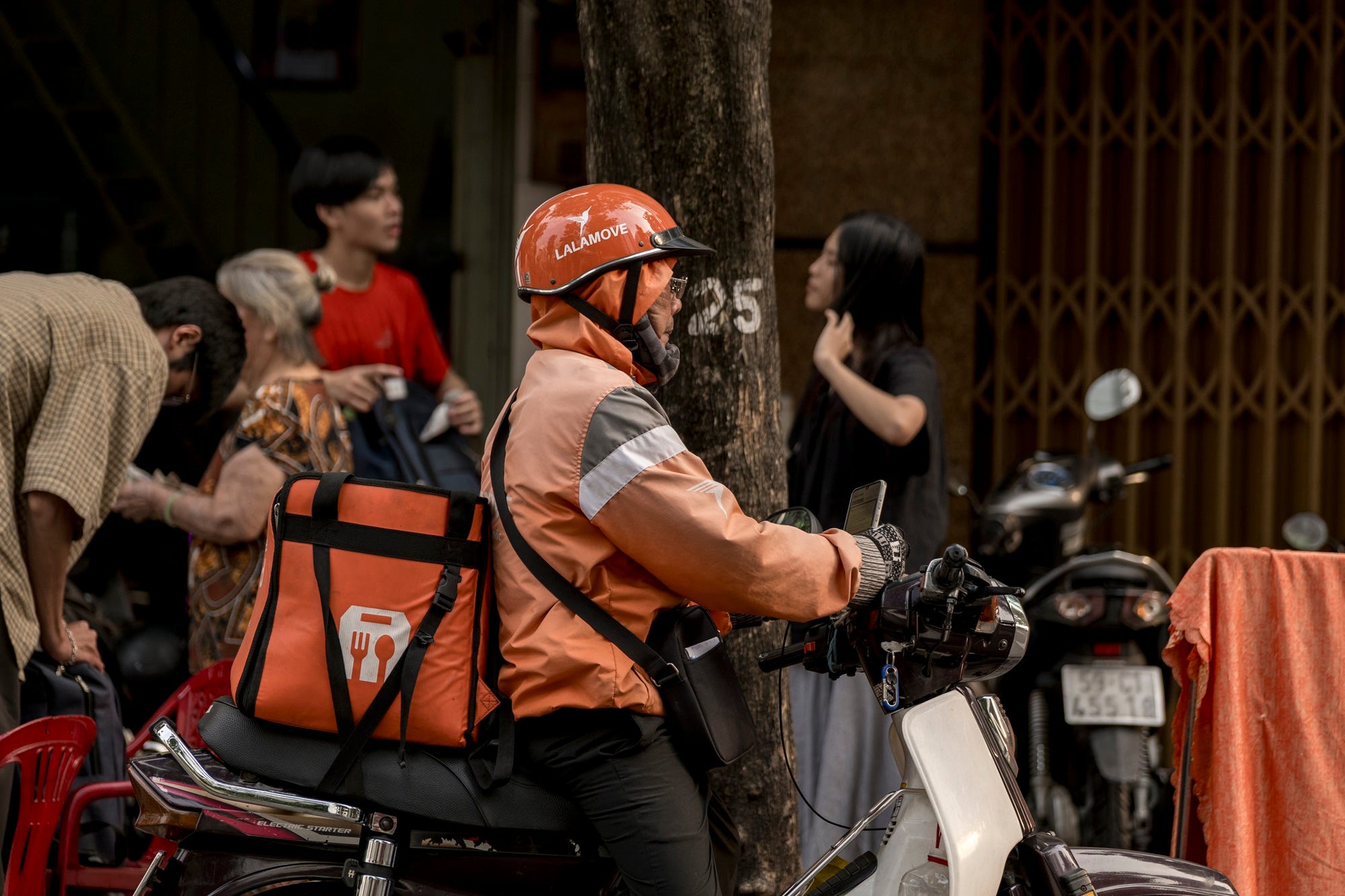 Gần sáu giờ trời tháng Chạp mù sương chưa rõ mặt người, Nguyễn Văn Giáp đẩy chiếc xe tay ga cũ ra khỏi dãy trọ ở Đông Anh. Trời bên ngoài 12 độ, nên khoác chiếc áo đồng phục xanh quen thuộc xong anh bịt mũ trùm kín tai, đeo khẩu trang dày, găng tay len, bật ứng dụng. Điện thoại “nổ” cuốc đầu tiên.