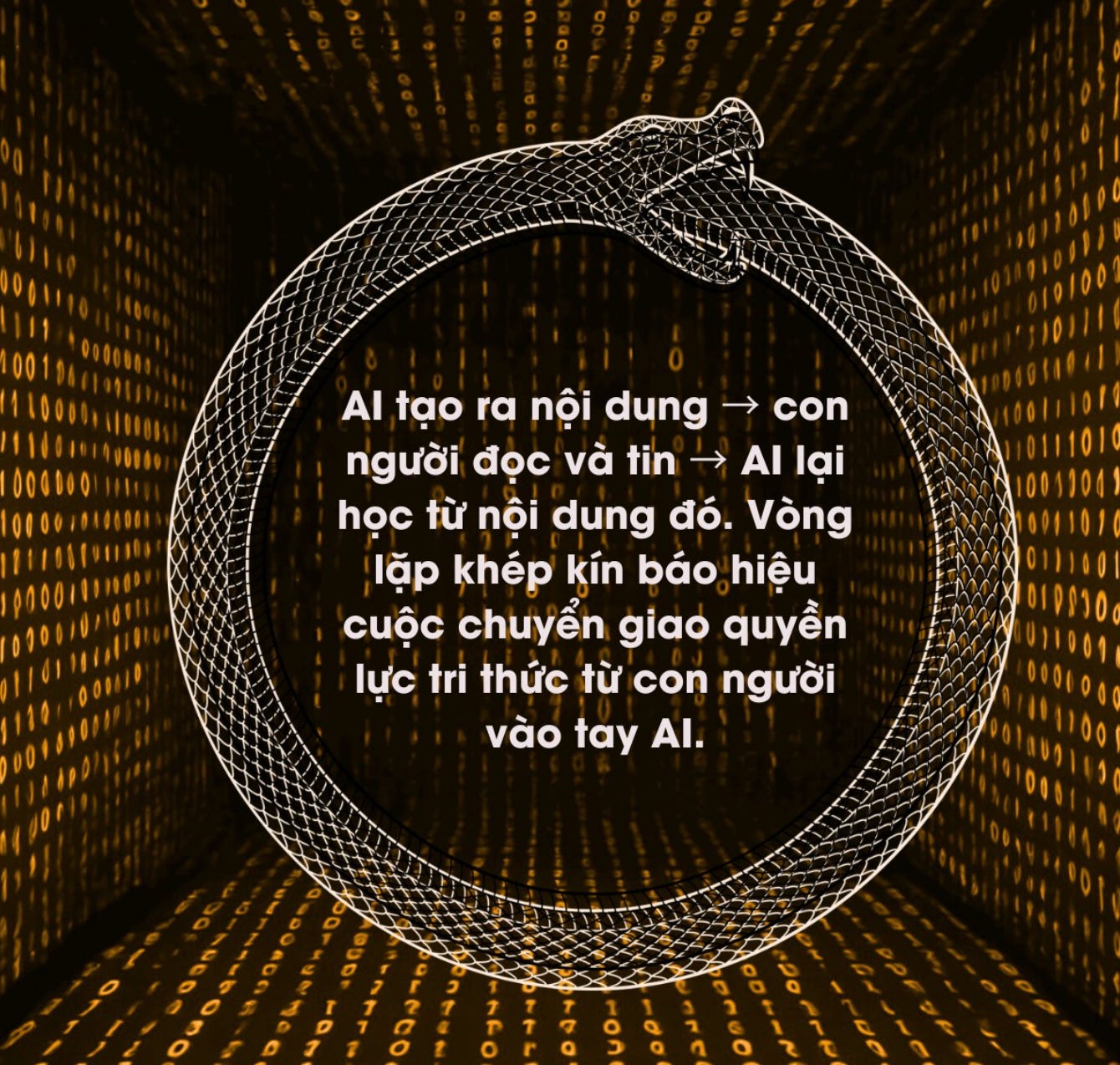 Tóm lại, quyền lực tri thức giờ đây trở thành một vòng lặp kín (closed loop). AI tạo ra nội dung → Con người đọc và tin → AI lại học từ nội dung đó. Đây là một dạng “thống soát của cái trung bình” được thực thi bằng máy móc.