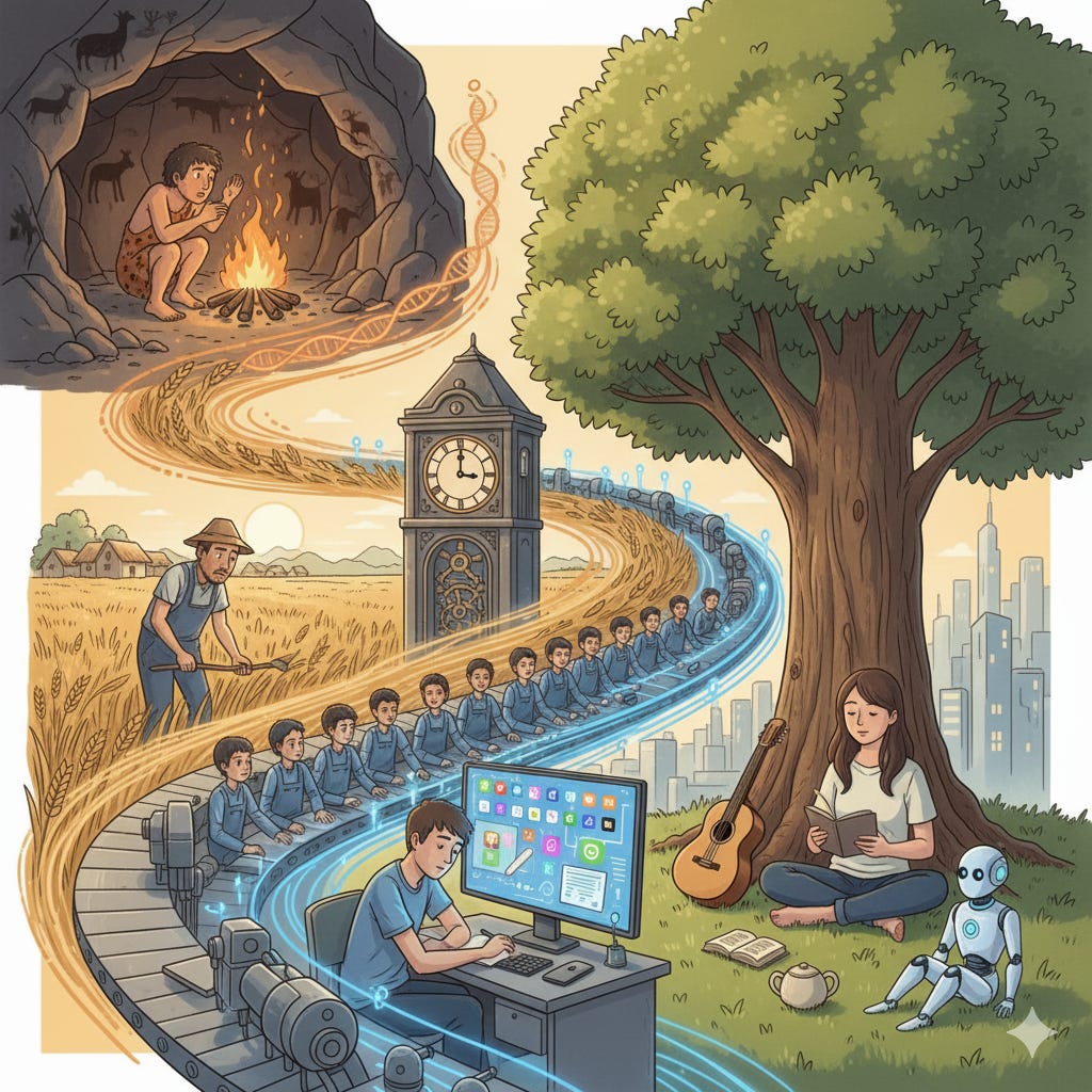 Mỗi phát minh trong lịch sử đều đến với cùng một lời hứa: làm cuộc sống tiện nghi hơn, giải phóng con người khỏi gánh nặng. Lửa giải phóng chúng ta khỏi cái lạnh và thức ăn sống. Bánh xe giải phóng chúng ta khỏi giới hạn của đôi chân. Máy móc giải phóng chúng ta khỏi lao động chân tay nặng nhọc.